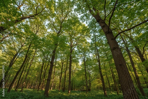 Fototapeta premium Trees viewed from a low perspective in a woodland