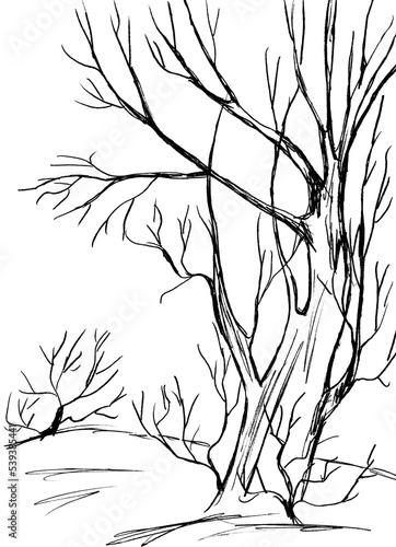 © alexandrnina, Obraz premium Trees with bare branches are black on a white background