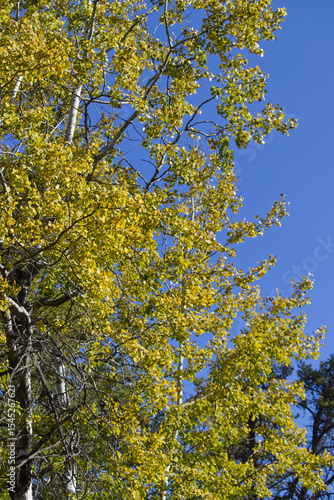 © RiMa Photography, Fototapeta premium Trees with changing leaves against a blue sky