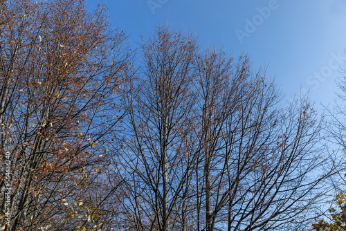 Obraz premium Trees with foliage falling in autumn