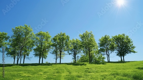 © LukaszDesign, Fototapeta premium Trees with green grass under a clear blue sky