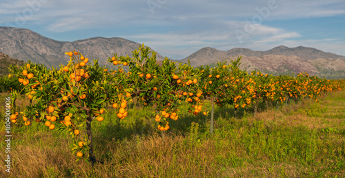 © Mike Mareen, Obraz premium Trees with ripe mandarins in an orchard in the Neretva Delta in Croatia