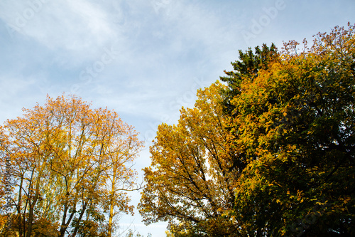 Fototapeta premium Trees with yellow foliage against a blue sky