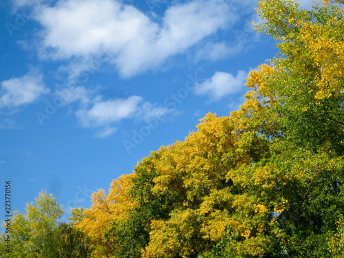 © delobol, Fototapeta premium Trees with yellow foliage against blue sky.