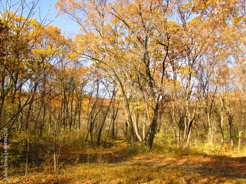 © Vladlen, Obraz premium trees with yellow leaves behind which you can see mountains