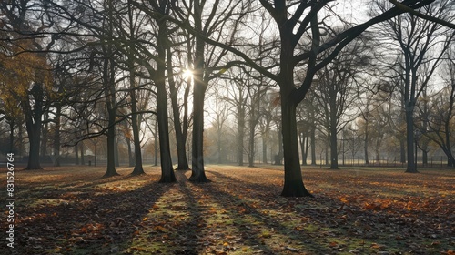 © The 2R Artificiality, Naklejka premium Trees without leaves in the autumn sunlight