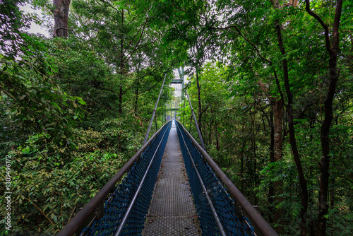 Fototapeta premium TreeTop Walk with suspension bridge and rainforest panorama in MacRitchie...