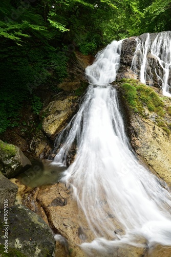 © Tonic Ray Sonic, Obraz premium trekking around waterfall in summer