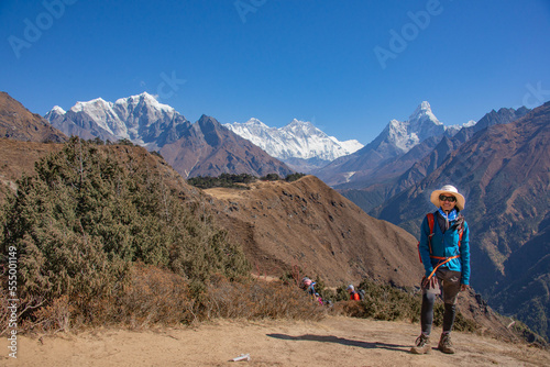 Fototapeta premium Trekking to Everest Base Camp under Cholatse and Taboche peaks, Khumbu, Nepal