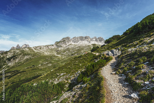 Obraz premium Trekking trail through rugged alpine scenery