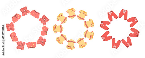 © irina, Fototapeta premium Trendy baby clothes with pockets and stripes, isolated clothes for newborn babies o toddlers. Jumpsuit of cotton, soft textile for children of young age. Shops or stores. Vector in flat style .