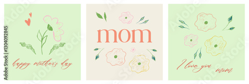 © Анжелика Полтавец, Fototapeta premium Trendy crayon Mother's Day in nude, beige color. Spring crayon flower for holiday design. Mother day design with chalk texture. Vector illustration template