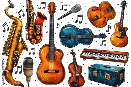 © Sergei, Naklejka premium Trendy graphic design for music poster. Flat vector isolated illustration.