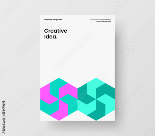 © pro, Fototapeta premium Trendy handbill vector design illustration. Vivid geometric hexagons journal cover concept.