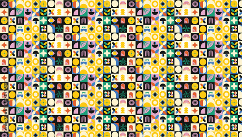 © Jolie, Fototapeta premium Trendy Neo geometric pattern, vector background. Geometry abstract print design. Op art, neo geometry, bauhaus.