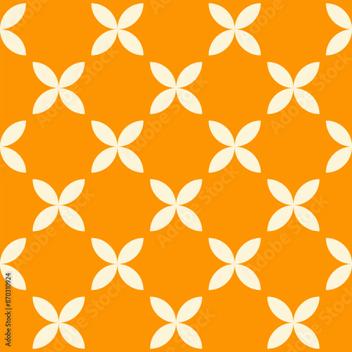© Elena, Fototapeta premium Trendy retro seamless pattern with geometric beige flowers on a orange background. Modern minimal abstract background. Vector illustration