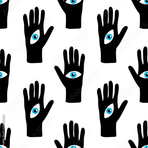© C Design Studio, Obraz premium Trendy seamless pattern with hand drawn magic elements as hand with the eye