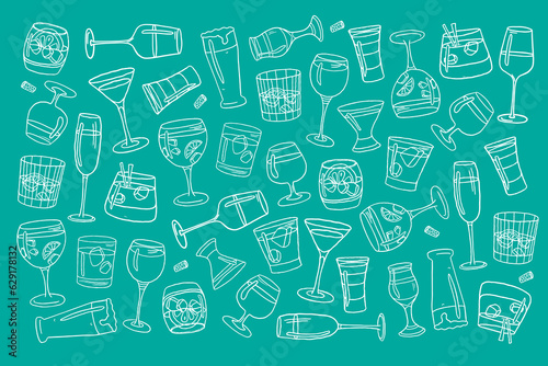 Fototapeta premium Trendy set with alcohol drinks in doodle style. Great for decoration...