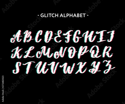 Obraz premium Trendy style distorted glitch typeface. Letters and numbers, vector.