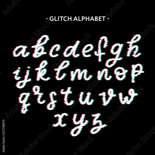 Obraz premium Trendy style distorted glitch typeface. Letters and numbers, vector.