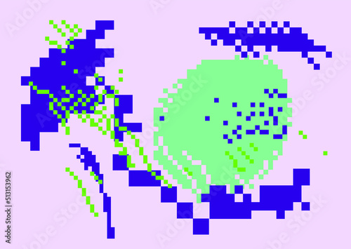 Obraz premium Trendy vaporwave background with pixel art chaotic composition. Concept of a...