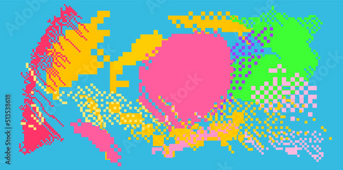 Obraz premium Trendy vaporwave background with pixel art chaotic composition. Concept of a...