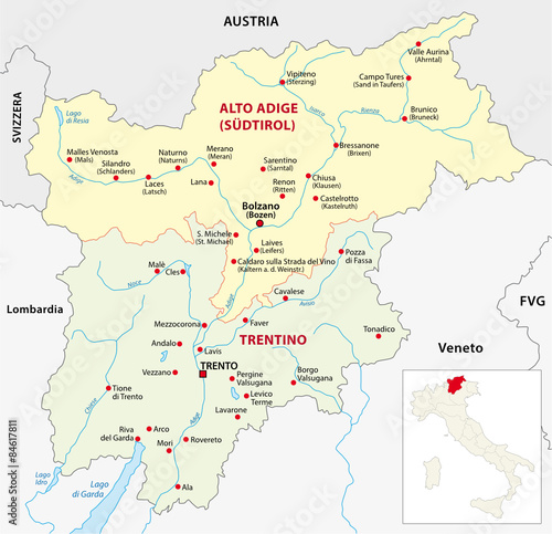 Obraz premium trentino administrative map