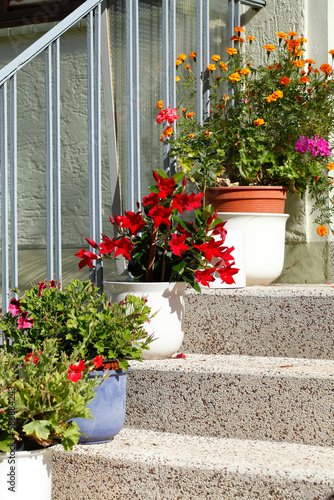 Naklejka premium Treppenstufen mit Blumenkübeln, Deutschland