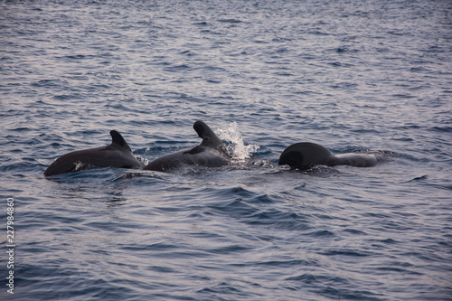 © EMILIA, Obraz premium tres cetáceos bajo el mar, con espacio
