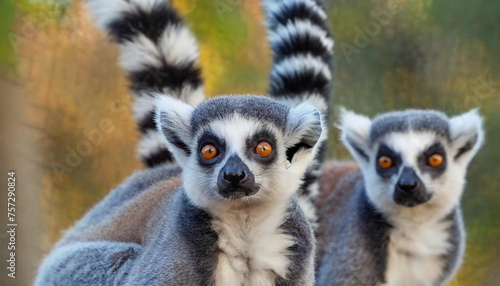 © Renán Vicencio Uribe, Obraz premium Tres lémures grises mirando a camara, se ven sus colas paradas