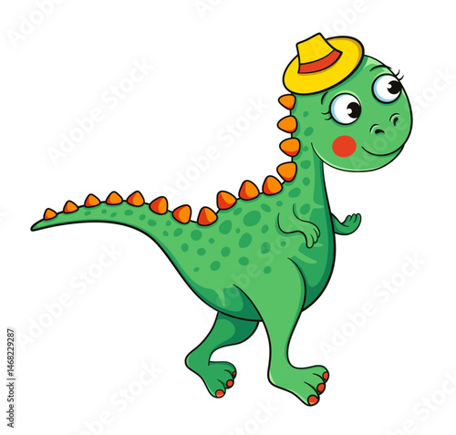 © Iuliia Shkliar, Obraz premium Trex Female Dinosaur Logo. Cute Female Mascot