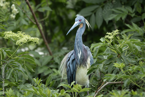 Naklejka premium Tri-colored Heron in mating plumage at Cypress Wetlands in Beaufort , South Carolina.