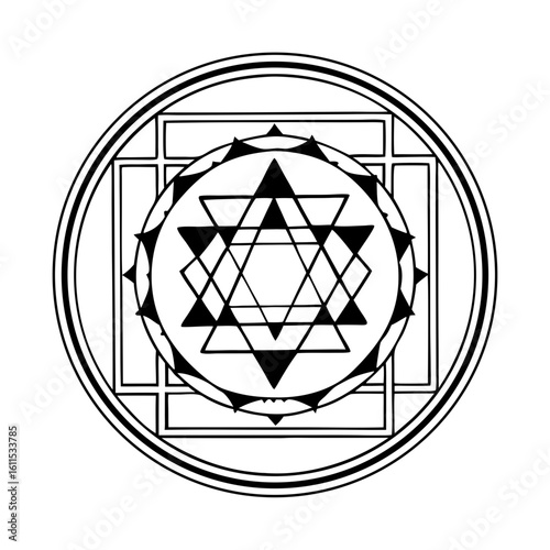 Fototapeta premium Triangle-Embedded Geometric Mandala with High Contrast