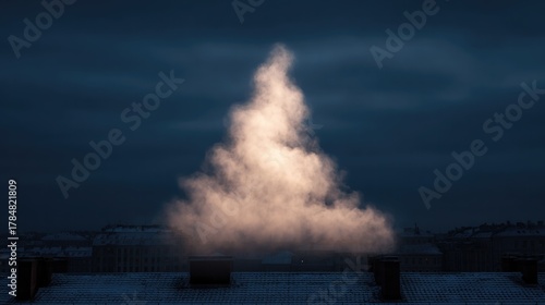 Obraz premium Triangular cloud formation resembling Christmas tree shines agai
