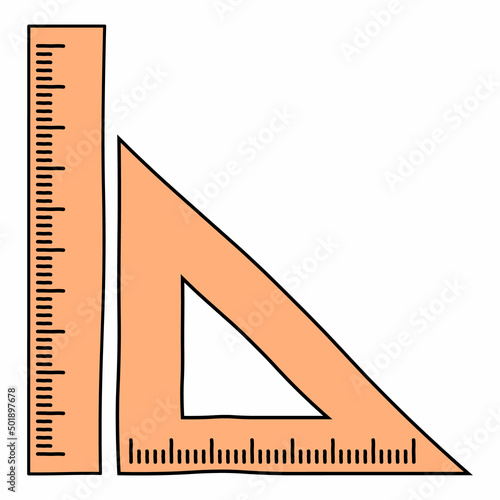 © Zizo, Obraz premium triangular ruler and straight ruler hand drawn vector icon isolated on white background
