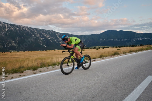 © .shock, Fototapeta premium triathlon athlete riding bike