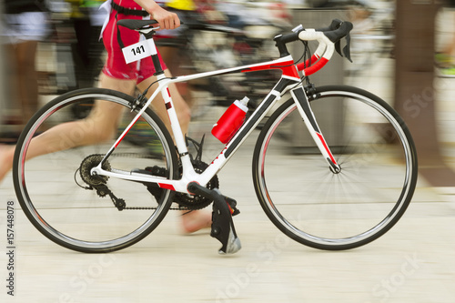 © GDM photo and video, Obraz premium triathlon competitors in ciclyng , cyclist in action and motion