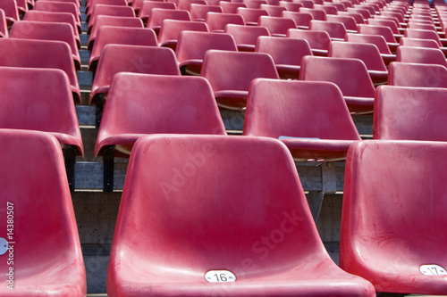 © Blacky, Naklejka premium Tribüne, Arena, Stuhlreihe, rot