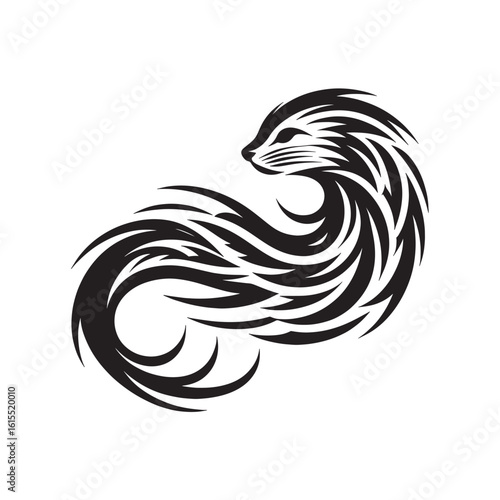 © Stock Giant, Fototapeta premium Tribal American Mink Silhouette with Decorative Swirls Curved Lines and Patterned Cutouts in Clean Black Vector Isolated on White