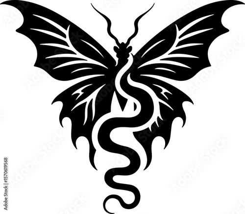 © VectoraVerse, Fototapeta premium Tribal Butterfly Serenity tattoo design