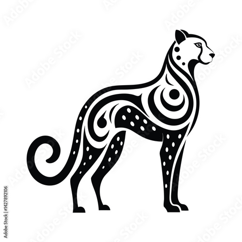 © Tamanna, Fototapeta premium Tribal Cheetah Silhouette Tattoo Design Vector