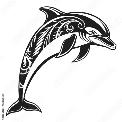 Obraz premium Tribal dolphin with ornate patterns jumping