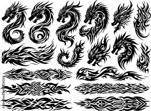 Obraz premium Tribal Dragon & Flame Tattoo Collection" vector bundle graphics