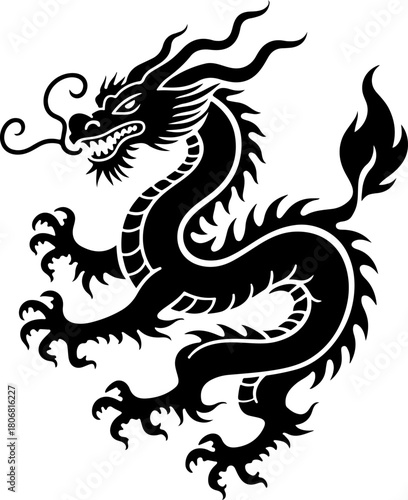 © H market, Obraz premium Tribal Dragon Silhouette Tattoo Design”