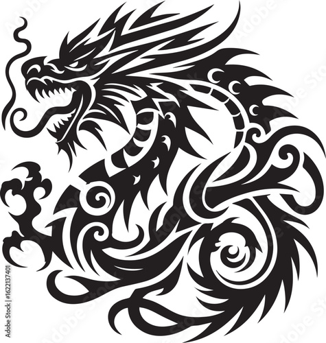 Obraz premium Tribal Dragon Tattoo vector Design black on white background