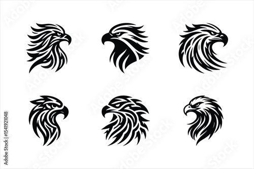 Obraz premium Tribal Eagle Head Designs Vector Illustrations for Tattoos, Logos & More