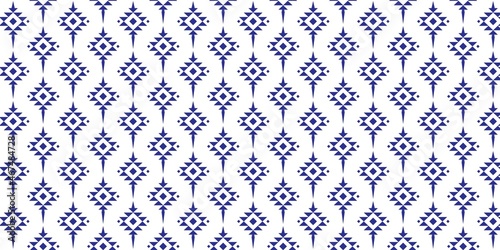 © Wara Lofitra, Fototapeta premium Tribal Ethnic Geometric Pattern Swatches Blue Vector Background Design for Motif Print, Banner, Backdrop.