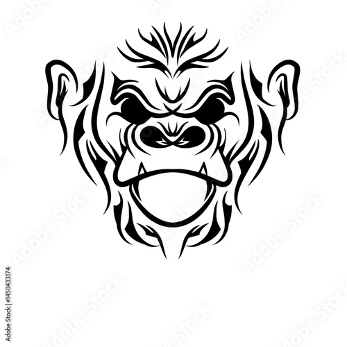 Obraz premium Tribal gorilla face design in black and white, showcasing intricate patterns and fierce expression