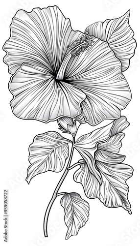 Fototapeta premium Tribal Hibiscus flower Tattoo black and white illustration