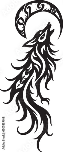 © VectoraVerse, Obraz premium Tribal Howling Wolf and Moon vector